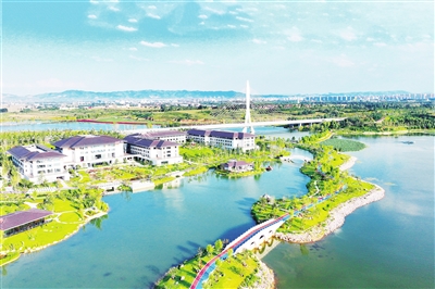 秋色宜人的漳澤湖國家城市濕地公園迎接參加“2024中國-東盟周”的八方賓朋。 本報記者 張國平 攝