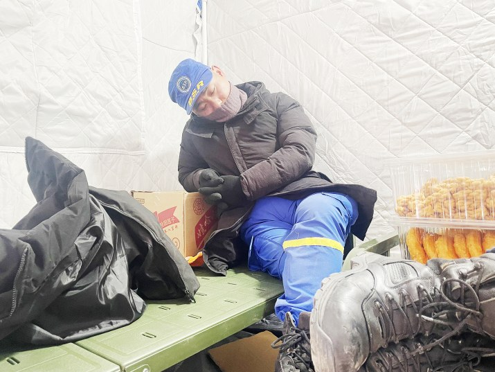 氣溫很低,發(fā)放的飲用水很快就結(jié)成了冰,吃飯時(shí)的哈氣能結(jié)結(jié)實(shí)實(shí)擋住人的臉。但每個(gè)隊(duì)員都仿佛不知寒冷、不知疲倦。