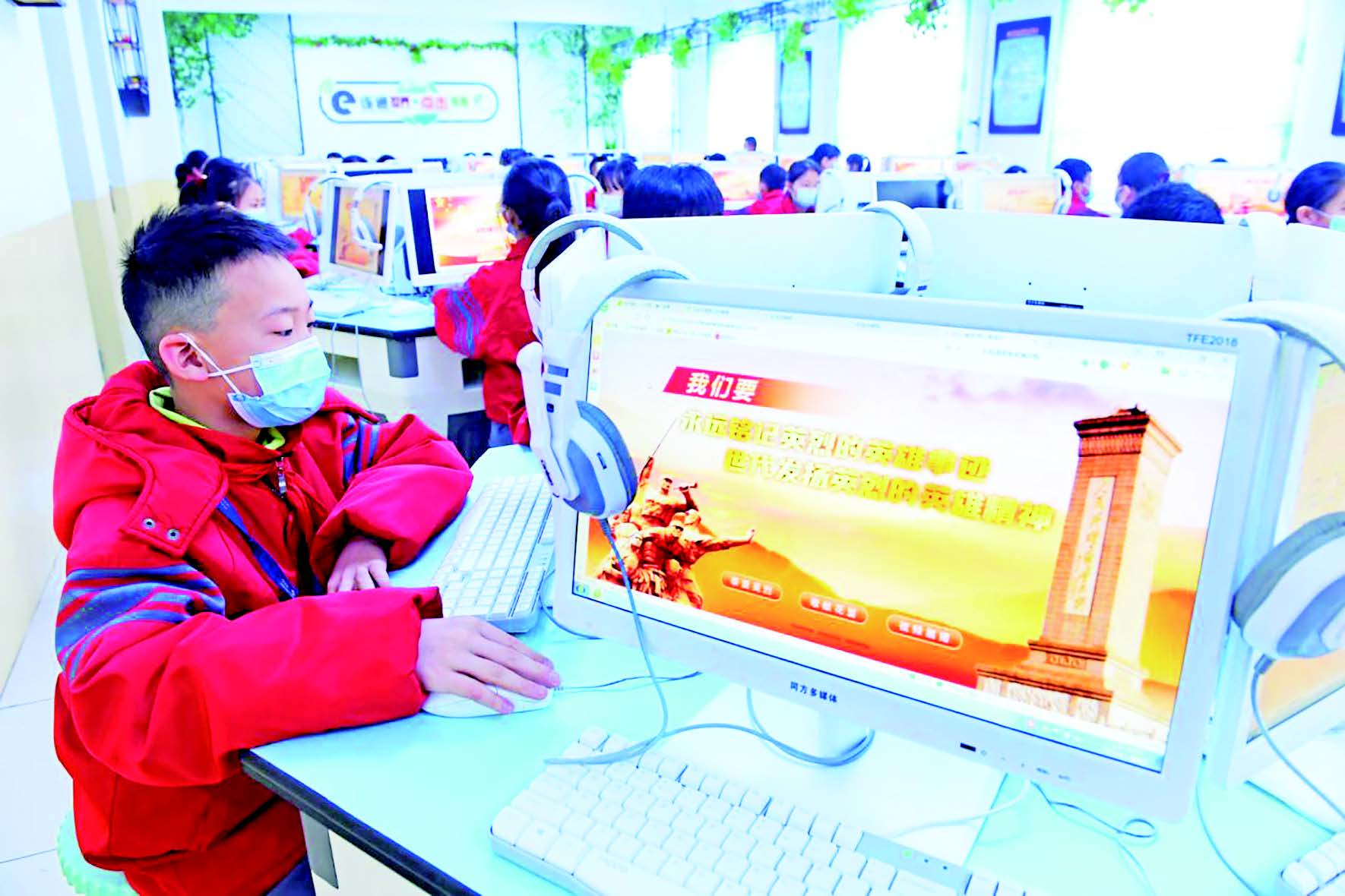 潞州區上南街小學的學生們通過“網上祭英烈”的方式表達對烈士的緬懷之情。