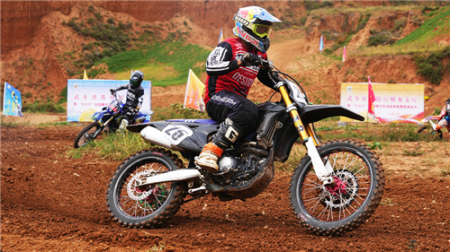 一輛輛摩托車好似一道道閃電,競相飛馳在高低起伏的賽道中,飛躍障礙、漂移過彎、直線加速……一系列專業動作,展示出了越野的魅力,扣人心弦的場景讓人目不暇接、血脈僨張。轟鳴的馬達聲點燃了現場氣氛,歡呼聲、叫好聲接續不斷。選手們用精湛的駕駛技術將人與車的完美融合演繹得淋漓盡致,讓在場的每一位觀眾都熱血沸騰,仿佛置身速度與激情的海洋之中。