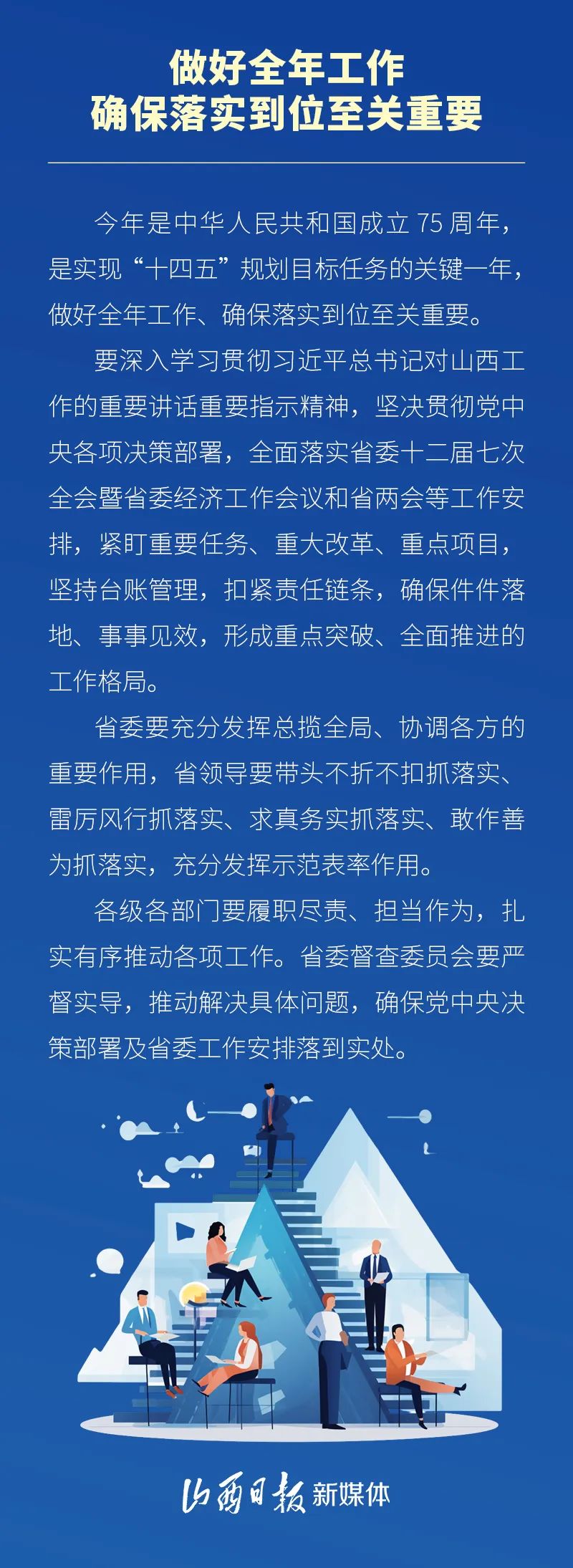 1月30日,省委召開常委會(huì)會(huì)議,傳達(dá)學(xué)習(xí)習(xí)近平總書記在“國家工程師獎(jiǎng)”首次評(píng)選表彰之際作出的重要指示精神,研究我省貫徹落實(shí)意見,傳達(dá)貫徹全國統(tǒng)戰(zhàn)部長會(huì)議精神,審議通過《省委常委會(huì)2024年工作要點(diǎn)》《關(guān)于落實(shí)省委十二屆七次全會(huì)暨省委經(jīng)濟(jì)工作會(huì)議和省兩會(huì)部署的目標(biāo)任務(wù)分工方案》《山西省2024年政黨協(xié)商計(jì)劃》。省委書記唐登杰主持會(huì)議。
