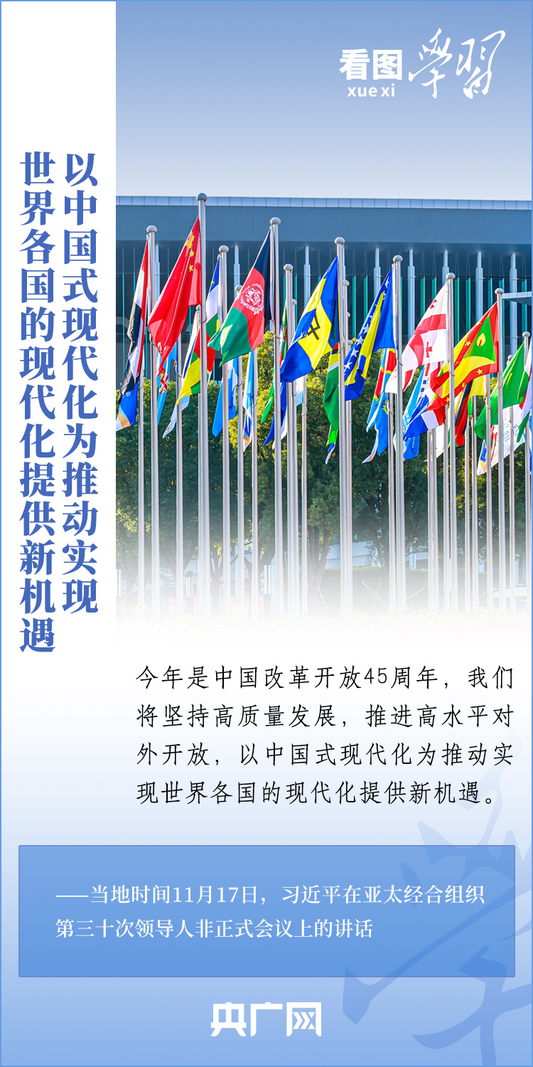 當地時間11月17日上午,亞太經合組織第三十次領導人非正式會議在美國舊金山舉行。國家主席習近平出席會議并發表題為《堅守初心 團結合作 攜手共促亞太高質量增長》的重要講話。習主席在講話中全面闡述了中國對深化亞太合作、促進地區和世界經濟增長的重要主張,以“四個堅持”提出多項務實舉措,希望同各方一道努力,共同打造亞太下一個“黃金三十年”。一起來學習!