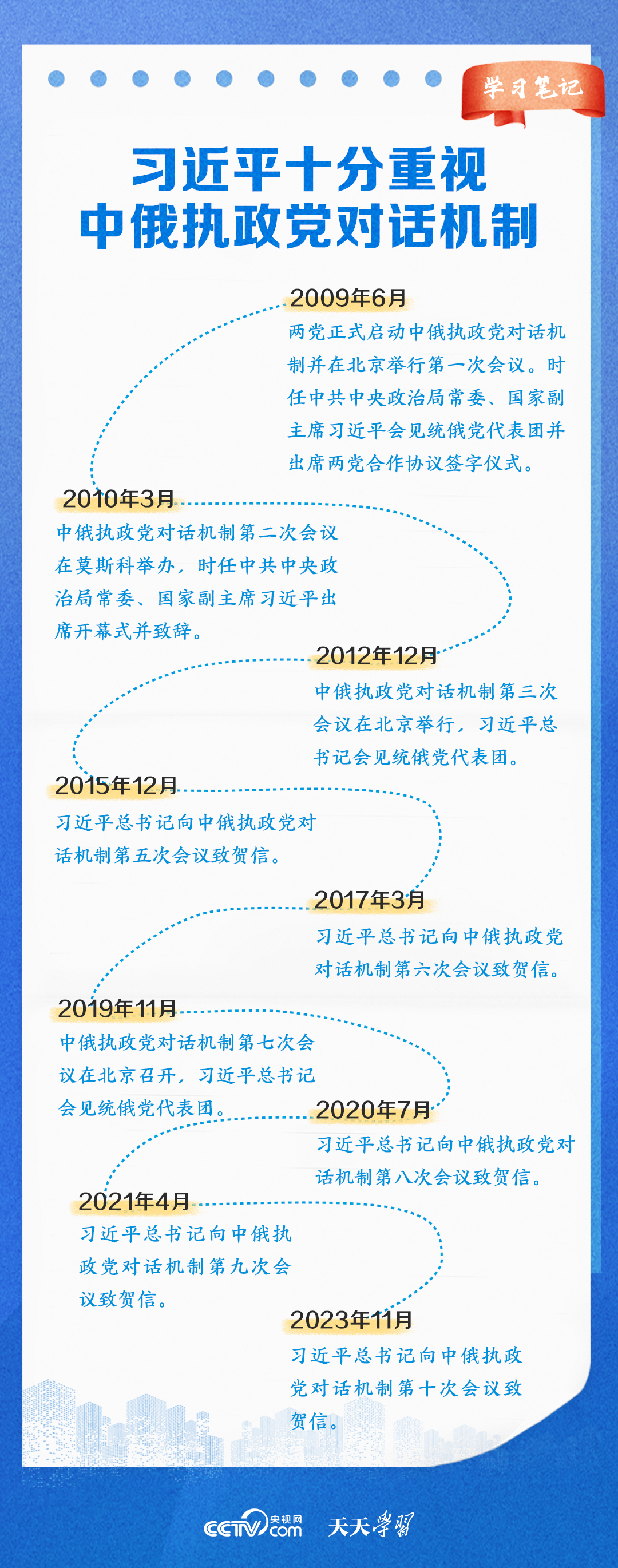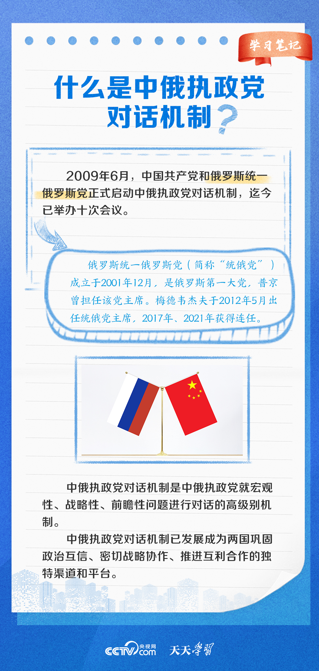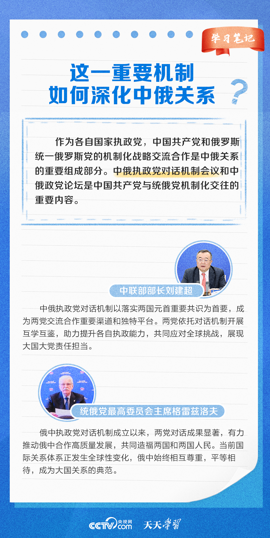 天天學習 11月20日,中俄執政黨對話機制第十次會議以視頻方式舉辦。習近平總書記同普京總統分別向會議致賀信。習近平總書記在賀信中強調,中俄執政黨對話機制已發展成為兩國鞏固政治互信、密切戰略協作、推進互利合作的獨特渠道和平臺。