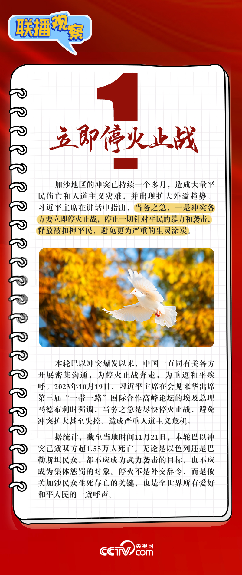 “當(dāng)前形勢下,金磚國家就巴以問題發(fā)出正義之聲、和平之聲,非常及時、非常必要。”在本次會晤中,習(xí)主席結(jié)合當(dāng)下巴以局勢,提出三點正義主張。