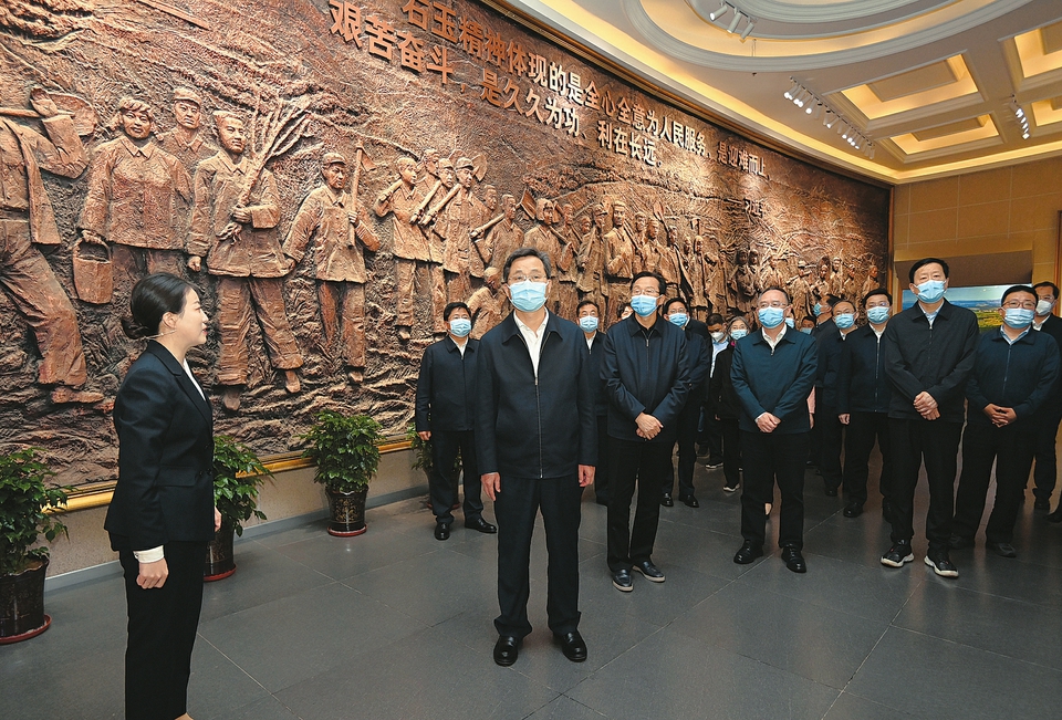 6月1日,省委書記藍佛安,主題教育中央第三指導組組長韓長賦,省委副書記、省長金湘軍等領導同志到右玉精神展覽館重溫了習近平總書記對右玉精神的重要指示批示精神。本報記者 史曉波 攝