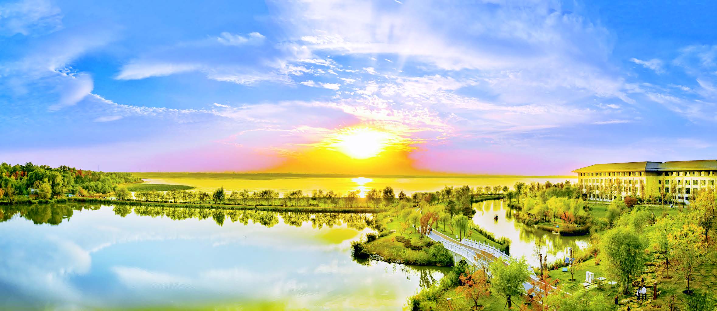 金秋十月,秋色漸濃,漳澤湖國家城市濕地公園,秋葉黃中透綠、綠中帶紅,在陽光照耀下色彩斑斕、如詩如畫,水天相映,勾勒出一幅天藍、地綠、水清的優美生態畫卷。