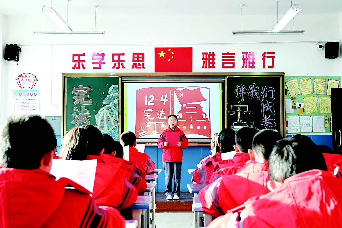 12月4日,第十個國家憲法日。當天,潞州區上南街小學開展國家憲法日和“憲法宣傳周”主題教育活動。通過憲法晨讀、舉辦憲法知識小課堂、互動問答、傳唱《憲法伴我成長》等形式,讓學生們學習憲法知識,增強法治觀念,弘揚憲法精神。