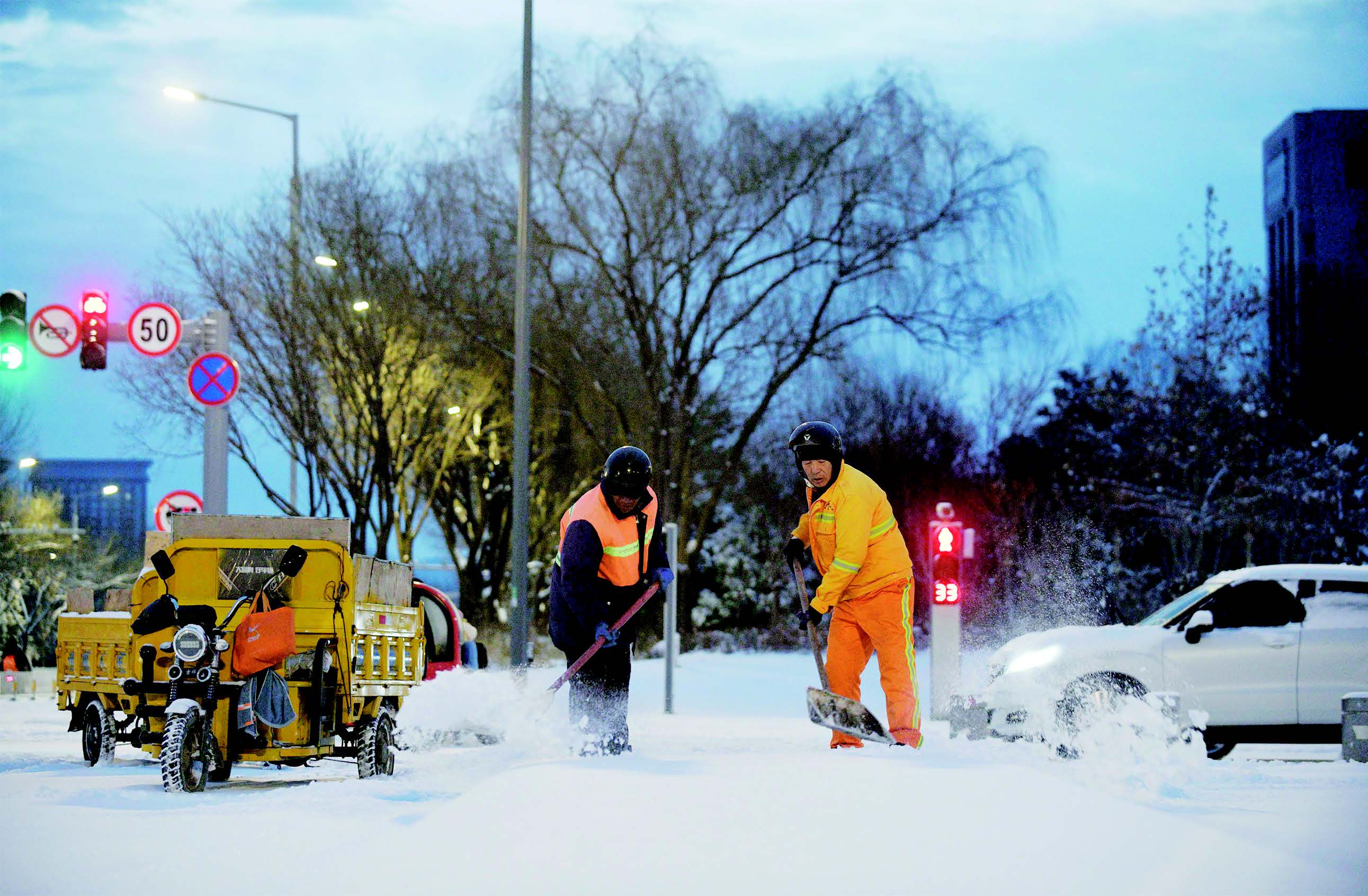 日前,市環衛部門搶前抓早,提前部署“除雪破冰”工作,冒嚴寒全力保障道路暢通。本報記者 田雨 攝