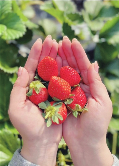 “這里的草莓又大又甜,和超市那種草莓的口感是不一樣的,下一次我一定會帶更多的朋友過來采摘。”游客紫玥難掩喜悅。