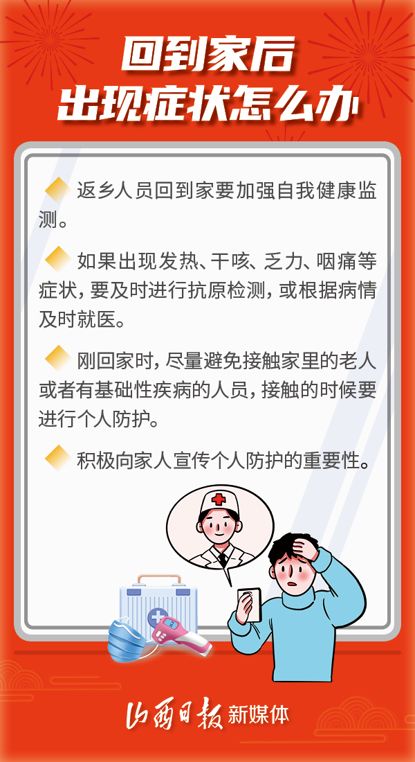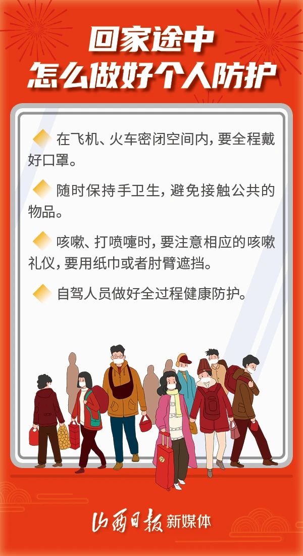 春節(jié)將至 返鄉(xiāng)之前要做哪些準(zhǔn)備? 回家途中怎么做好防護(hù)? 返鄉(xiāng)后怎樣保護(hù)未“陽”老人? 平安過春節(jié) 送你6個(gè)“健康錦囊” ↓↓